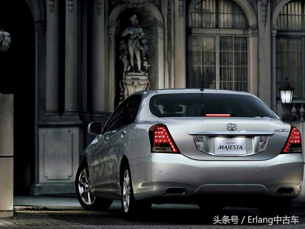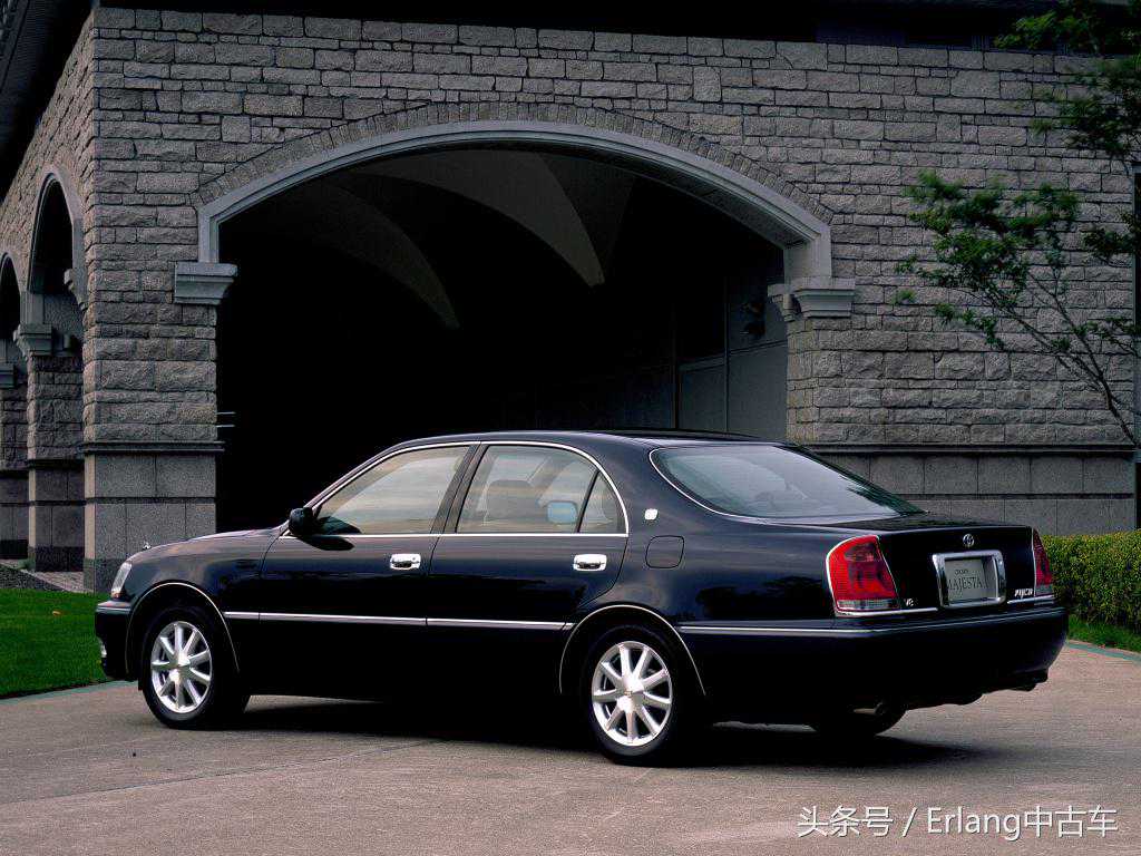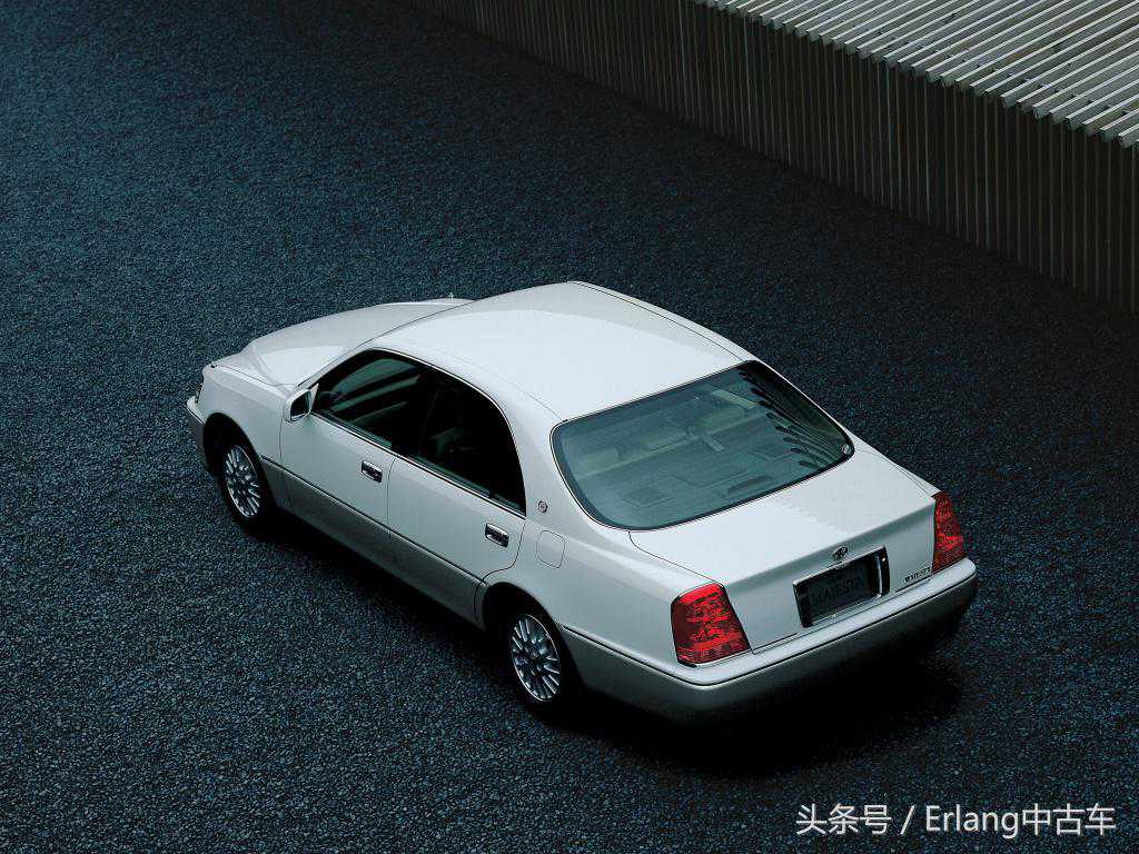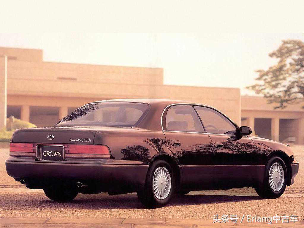皇冠车系诞生36年才诞生的承载式车身,首度采用便是在MAJESTA上。初代车为带B柱的硬顶造型,整体设计圆润,营造出0.31的超低风阻。细长的后尾灯组合更加烘托出车身的宽阔。高位刹车灯和当时的皇冠等车同样采用细长LED灯组,后因容易老化变暗,改用普通灯泡。
