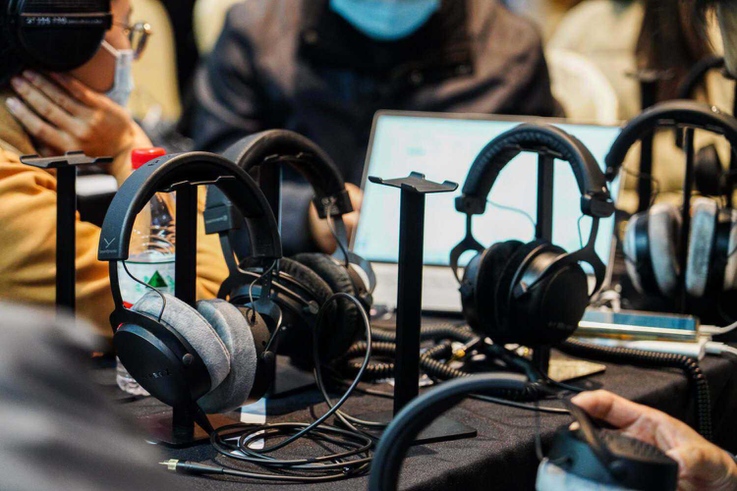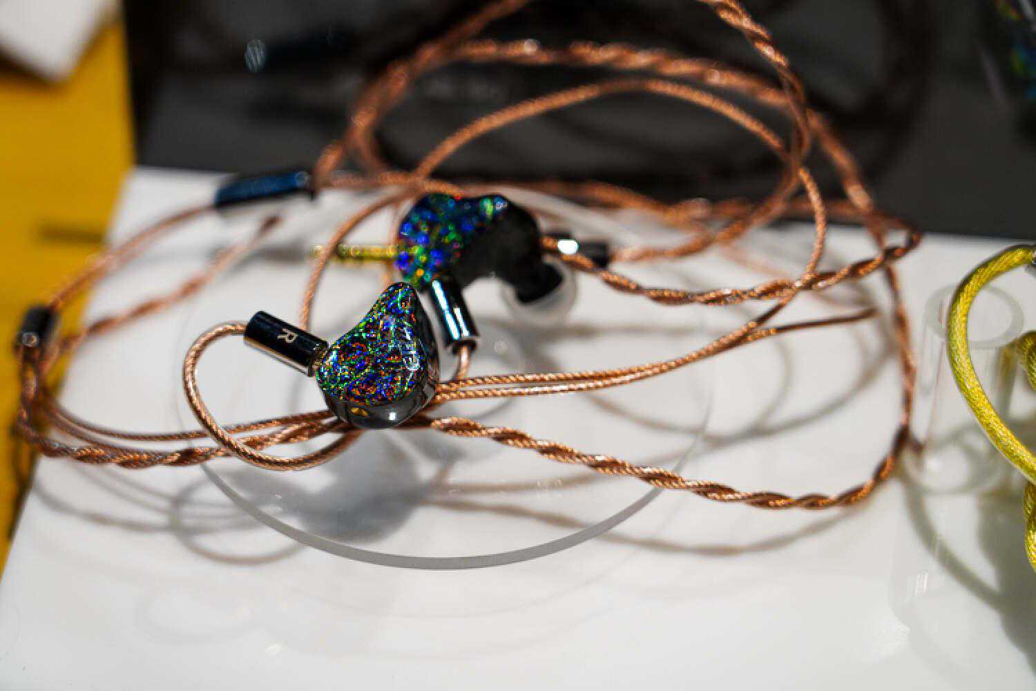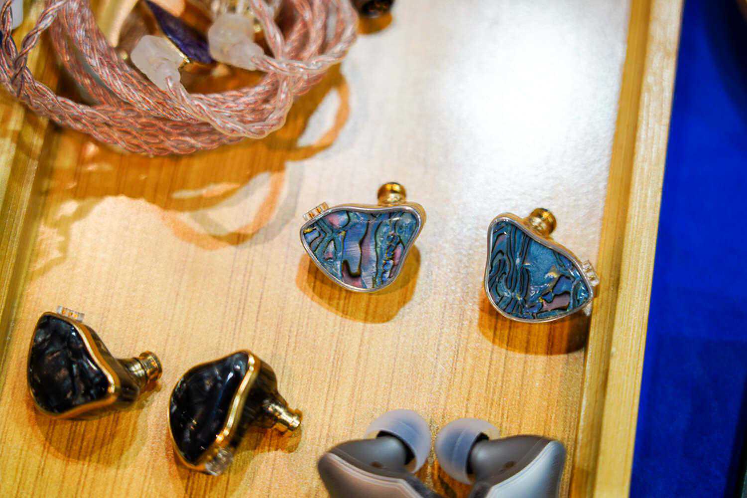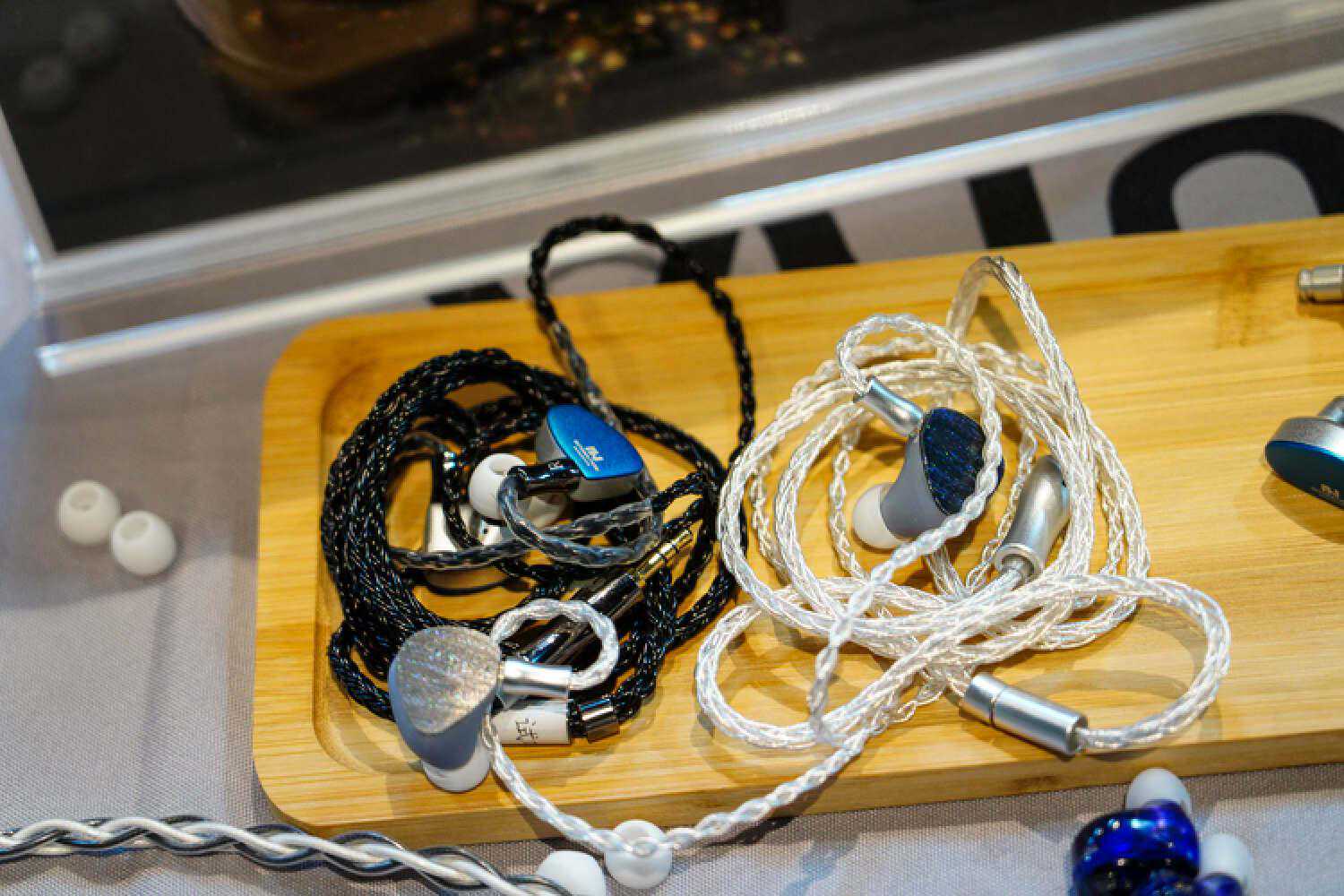 平头佬这边的旗舰压电单元耳塞也即将问世了,他们的平头塞路线都走的是比较暖厚模拟的路线,口碑可能存在两极分化,是属于比较偏科的路子,但也已经积累出了一批忠实拥趸。透明展示橱窗里的是艺听旗下的一些高端线材,他们是自有的研发和生产团队,在高端大耳线市场里有很高的份额,包括很多针对susvara的功放线都出自他们之手。