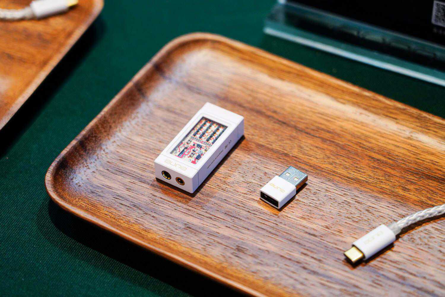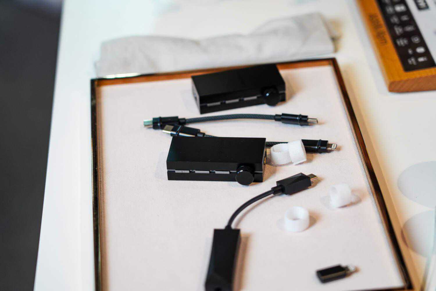 上图有2个非常非常好玩的产品,一个是新款的带电池大尾巴、以及对应的蓝牙模块,当没有蓝牙模块时,它本身是一个带电池的解码耳放,当插上的蓝牙模块时,便有了蓝牙输入功能,而且依然处于一个比较便携的体积内。连接方式是一个USB、一个3.5插头,3.5走的应该是同轴协议作为数字传输,USB口则用来充电,这样即便是在蓝牙模块合体以后,也依然可以1个C口给2个部分同时充电,同时这套东西在蓝牙模式下的声音也做的很好,是比较透明干净的现代声。
