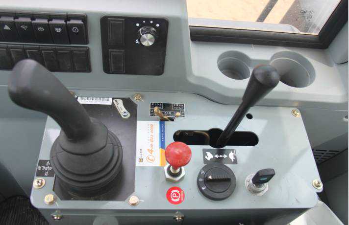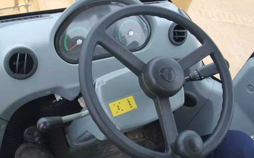 在座椅右下方设有制动类型选择开关,开关有两挡,分别是“坡上作业”和“平路作业”。在坡上时,将开关置于“坡上作业”,制动时动力不切断,作业更加安全可靠;平路作业时,将开关置于“平路作业”,制动时,变速箱自动回空挡,不仅可以有效保护变速箱,还可节省燃油。驾驶室前部设有组合式仪表,仪表具有三级报警功能,便于驾驶员及时发现故障。