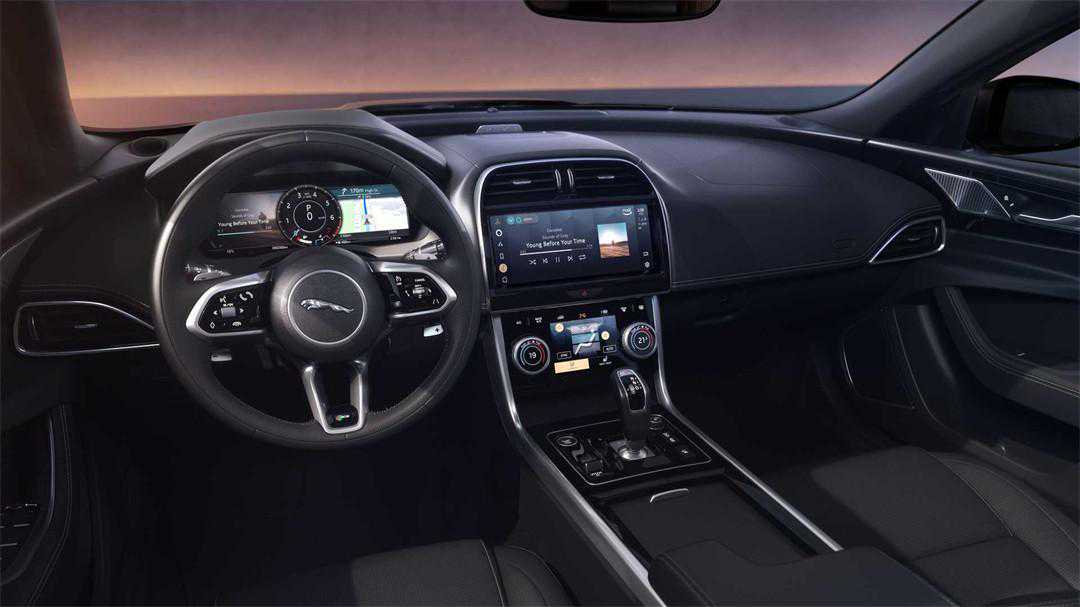 内饰方面,捷豹XE内饰的基本布局与普通版本保持基本一致,整体以黑色为主色调,配备三幅式多功能方向盘、液晶仪表盘、液晶触控屏幕,功能性高集成化的屏幕使得整个内饰显得十分的简约。