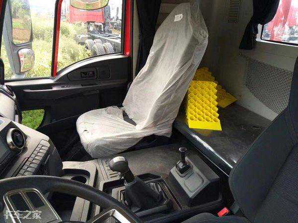 透过发动机舱采用的半开式隔音罩可以看到江铃福特生产的JXD609系列发动机,最大功率365马力,匹配法士特12JSD160TA手动变速箱。