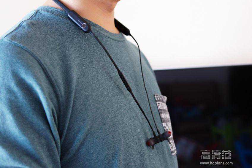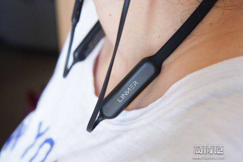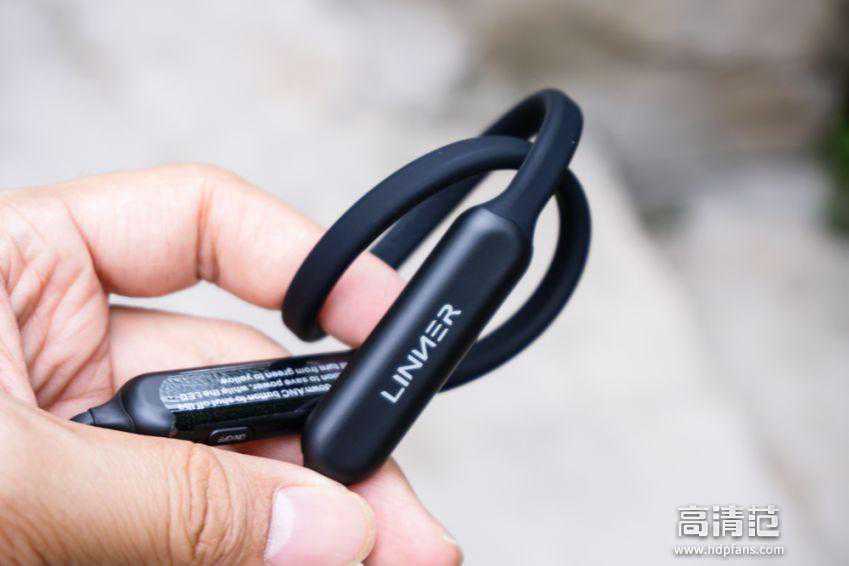 LinnerNC50主体材质为橡胶,给我的第一印象是比较粗。36克的重量,在降噪耳机中算是中等水平。由于材质比较柔软,项圈可以比较好的适应脖子,加上亲肤设计,没有什么不适感。在耳机腔体是铝合金材质,采用磁吸设计,悬挂下来会自动吸附在一起,免去耳机乱晃和缠绕的困扰。扁平宽大的面条线不易缠绕,也有效缓解了听诊器效应。不过,我觉得吸力还稍弱了些,吸的还不够紧。