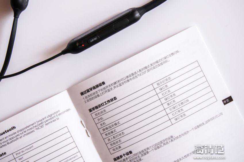 作为一款蓝牙耳机,LinnerNC50的使用并不复杂。说明书和包装盒上都有详细的按键功能说明,长按电源键3秒左右开机,会提示电量状态;长按5秒指示灯会红绿灯交替闪烁,此时进入蓝牙配对状态。