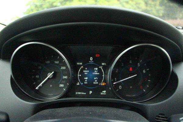 仪表台呈现的简约而功能齐全,亦属于捷豹的家族式设计风格,仪表的基本功能都可以通过多功能方向盘来操作,屏幕像素饱满色彩丰富,运动感有余且不失豪华感。