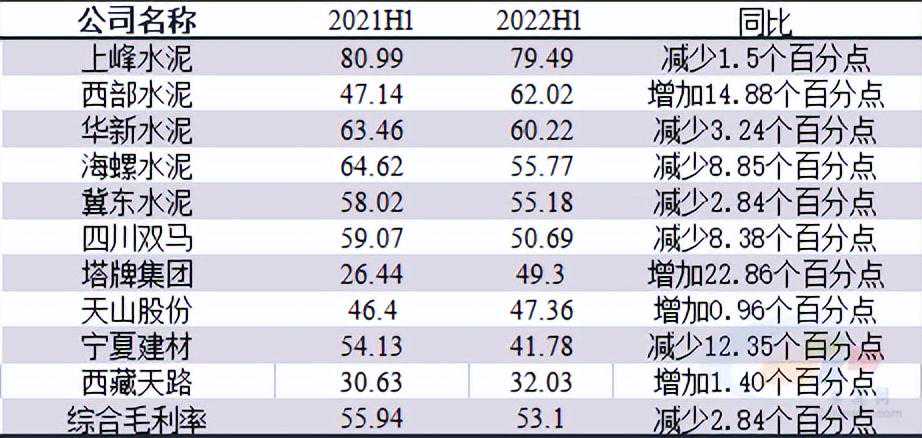 2022年上半年,上峰水泥(000672)等10家水泥企业的骨料综合毛利率同比下降2.84个百分点,其中有6成企业的骨料毛利率下滑。但总体来看,华东中南等地的骨料毛利率基本维持在40%以上,对于步入平台期的水泥企业来说,骨料仍是“水泥+”的优选项。