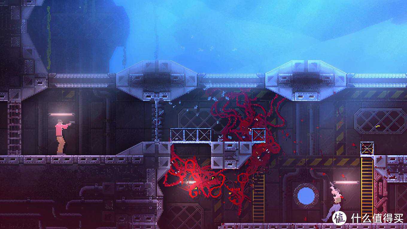 2D画面细腻精美。逆向恐怖游戏,主角是只红色怪物,要突破人类的重重包围逃走。这个设计还是比较有个性,冷门。不过游戏性还不错,由于没有地图,所以到处找路乱跑的氛围渲染得很到位。关卡有点少,可能刚上头没多久就通关了,希望后期会有DLC。中期拿到寄生能力后,玩法拓展会多不少,不过游戏难度也会相应降低,顺利的话9小时内能通。双摇杆的操作需要一点时间适应。总之是部优秀的小游戏。