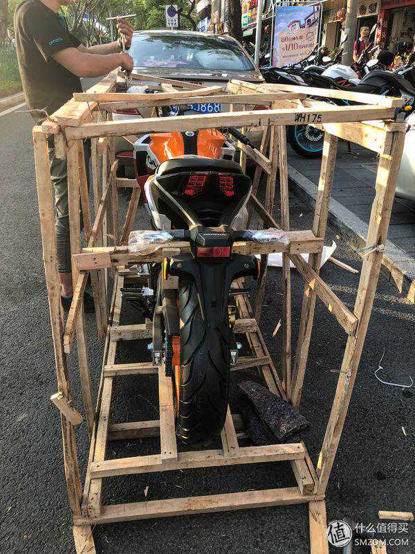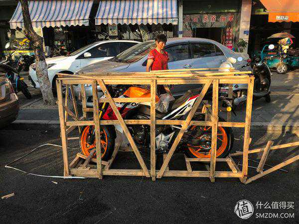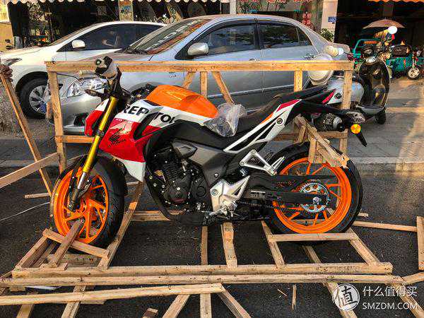 下午5点45分车子到店里,用一个小货车拉着过来的,五羊本田CB190R中文名叫暴锋眼,这个名字听着确实牛逼,但是听起来更山寨一点