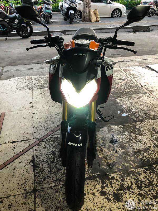 颜值控看上这款车,这么酷炫简直要炸了。GP版比普通单色的版本定价要贵出2000块钱,普通版本1.48万,GP版本1.68万,一个颜色的差别贵了2000块钱确实不划算,所以这个GP版本的车卖的不好,不如黑色红色的卖的多,以至于我找了厦门5家的五羊本田专卖店都没这个颜色的车,但是千金难买心头好啊,已经深爱了就也不管差个千八百块钱了。问了其中一家的专卖店说预订一下看看,让我等等,结果等了10天左右还是没有车,因为刚好国三的车7月份停产,国四的车还没上市销售,所以这个时间点太难订的到车。后面8月8日的那一天通过另外一家不是五羊本田专卖店的其他销售店才订到车,1.65万的裸车价,4-5天的时间就能倒车,8月13号接到通知下午车子能到店里,当天下午我忙完事就直接到店里等车。