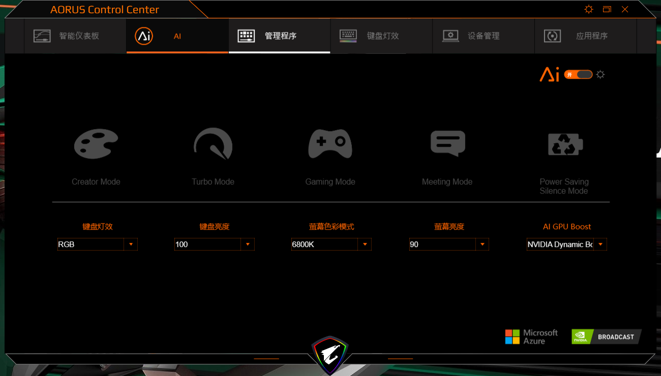特殊功能不仅在硬件上AORUS15PXD做到了出色的水平,在软件上它也提供了一些独特的功能。比如在自带的AORUS控制中心中,不仅提供了多种常规的性能模式,还提供了丰富的自定义散热设置,让发烧友们可以自己决定性能模式和风扇转速。