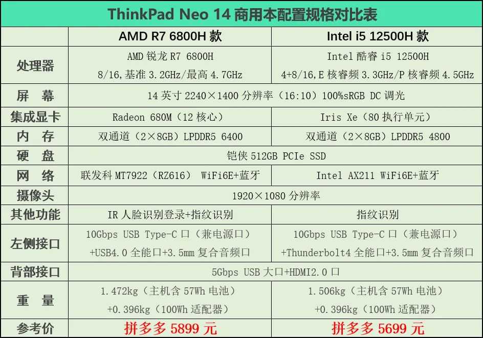 ●如果单位采购时非常看重续航,则优选锐龙R76800H款——但这里有个矛盾点:通常特别看重续航的用户,对性能的需求是偏弱的。既然如此,似乎就没必要选Neo14这样的中高端机型了,便宜的入门商用本也有很多选择。