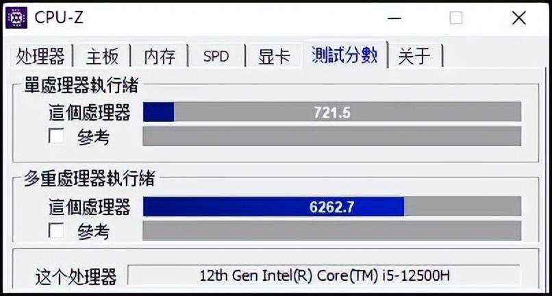 ▲CPU-Z基准性能,单核为626分和722分,i512500H领先多达15%!多核为6042分和6263分,i512500H领先幅度为4%!