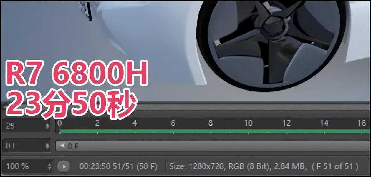 既然前面做了三维渲染的基准测试,那么两款Neo14在实际的三维渲染应用中表现如何呢?我们直接请出Cinebench的“真身”Cinema4D,它广泛应用在广告宣传、产品设计、动画设计和游戏场景的设计中。由于两台Neo14的处理器功率输出都比较高,所以也能胜任简单的建模和渲染应用。我们用它渲染2秒的汽车旋转动画(共计51帧画面),纯吃CPU部分的多核性能。