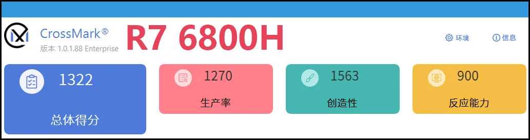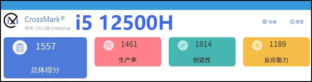 当然我们也要明确,ThinkPadNeo14作为商用机,“第一要务”还是办公和日常应用。那么在这两个应用层面,CPU的表现谁好呢?这里,就必须要请出跨平台、跨系统的日常应用测试软件CrossMark了:作为一款综合了轻量级的生产力应用(文档、表格等)、简单的创造性应用(设计和多媒体等)和反应能力的综合测试软件,CrossMark有个特点是它只考验CPU性能,基本不涉及GPU性能。