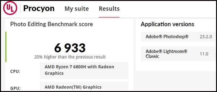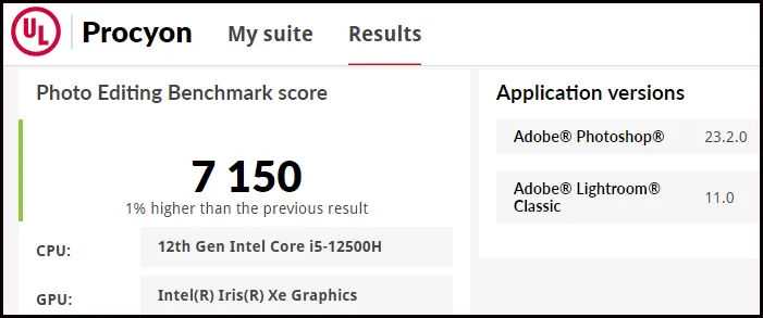 ▲测试结果再度出乎意料:尽管R76800H的Radeon680M集显相对于i512500H的IrisXe集显更强,但在Procyon的照片处理测试中,后者再度胜出,领先幅度为3%。