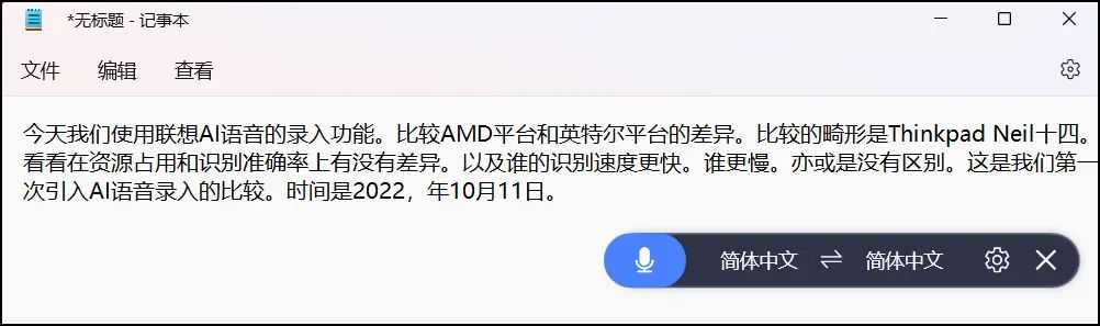 ▲这是AI语音录入的对比,两个平台完全一样,连错误都一样,且资源占用率很低,看来这一应用和硬件平台的选择关联不大——至少如今的硬件性能下早已不是问题,更多是看AI引擎本身。