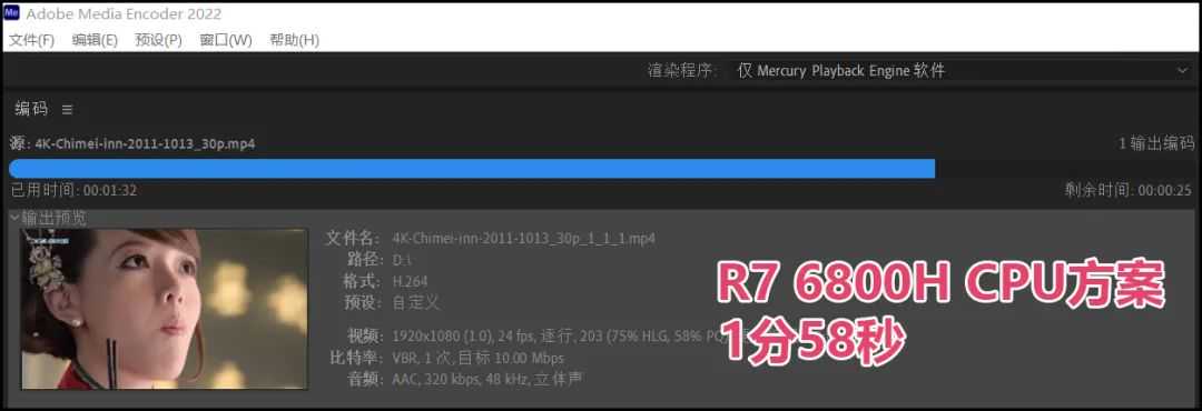 ▲三维渲染和CPU频率关系密切,所以我们前面预测这类长耗时渲染应用是R76800H更具优势(线程数量相同,而频率更高)。但结果让我们非常意外:总耗时23分39秒对23分50秒,i512500H竟然以更低的频率在长耗时三维渲染应用中微幅胜出!