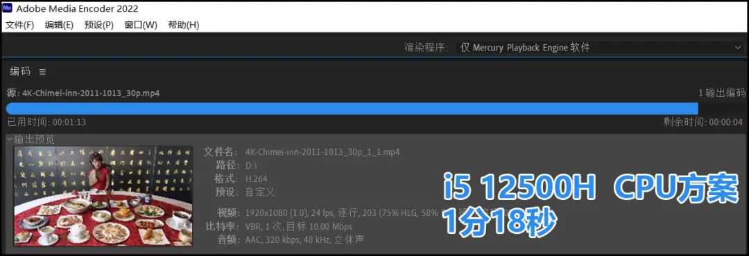 TIPS:如果选择OpenCL方案,GPU主导计算,A/I两款机型的耗时分别是2分24秒和2分21秒——Intel款依然微幅胜出。
