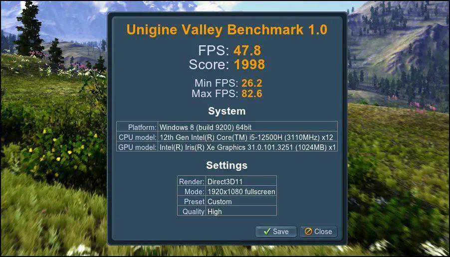 ▲UnigineValley是展现集显的游戏3D性能差异的不错测试工具,老读者应该知道,80EU的IrisXe可跑45fps左右,i512500H款Neo14的47.8fps已是同配置机型中的佼佼者。但与R76800H的12核心Radeon680M相比,依然有较大差异。