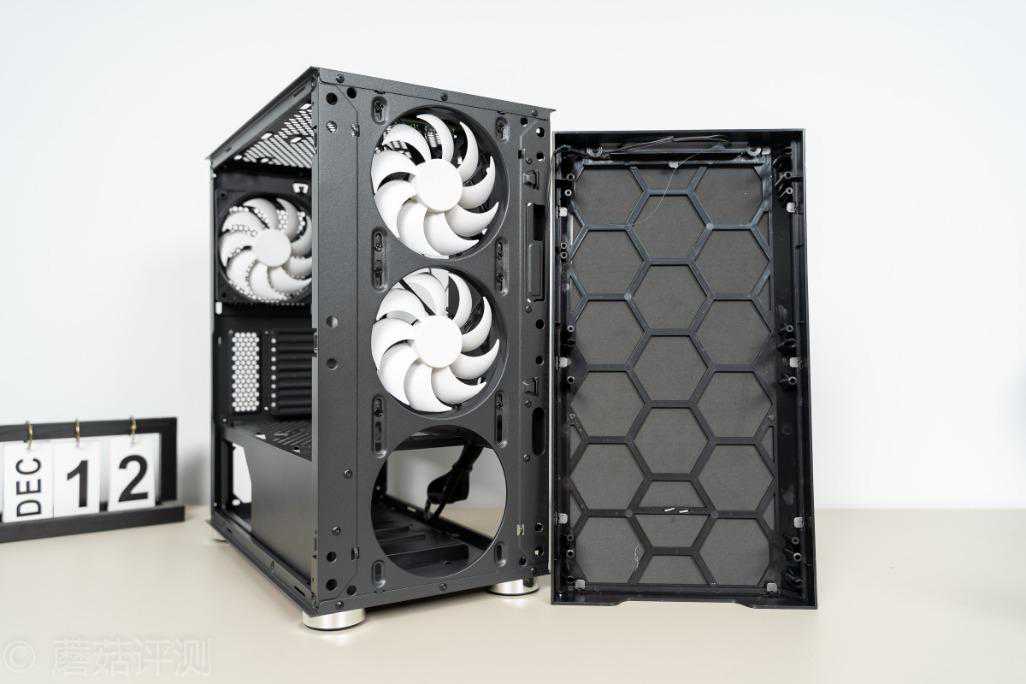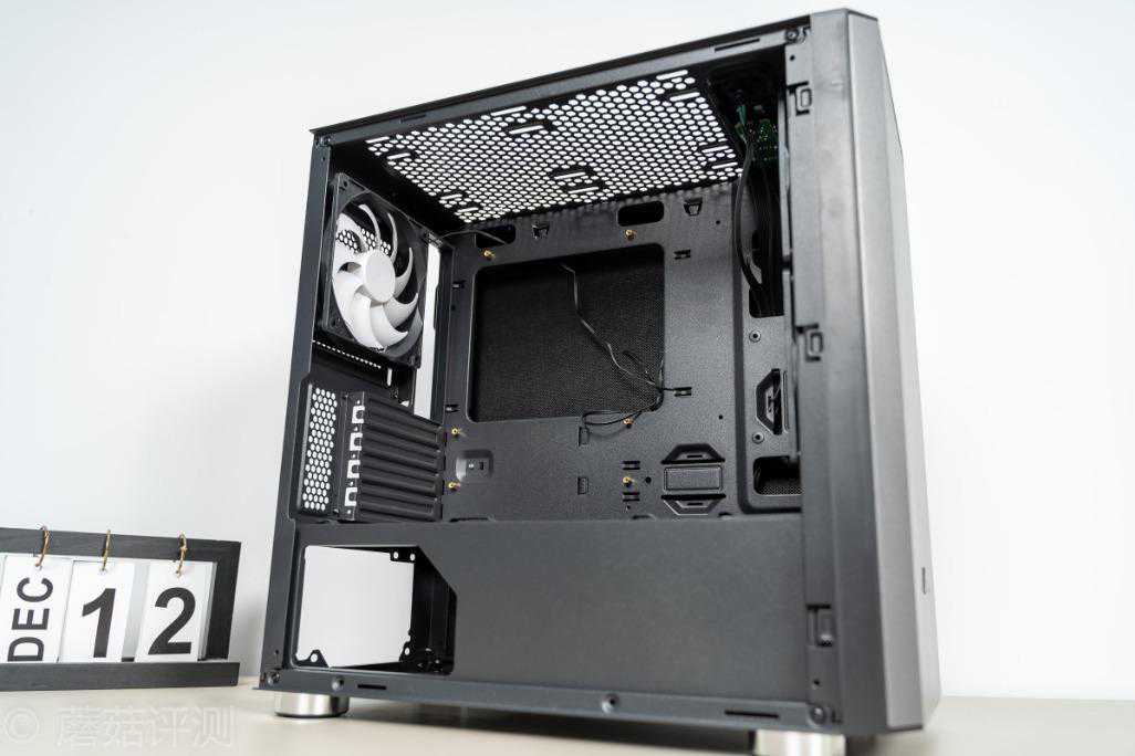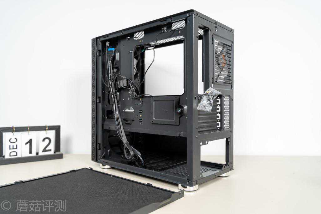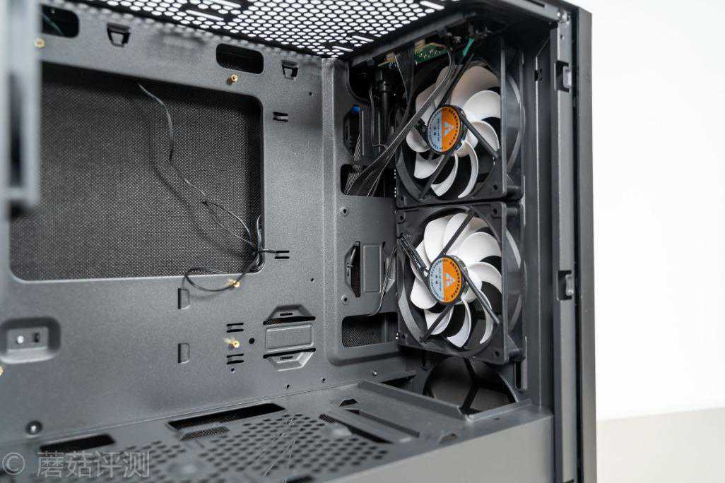 ▼机箱前部自带两把机箱风扇,好评,同时侧面有走线的孔位,可以方便理线