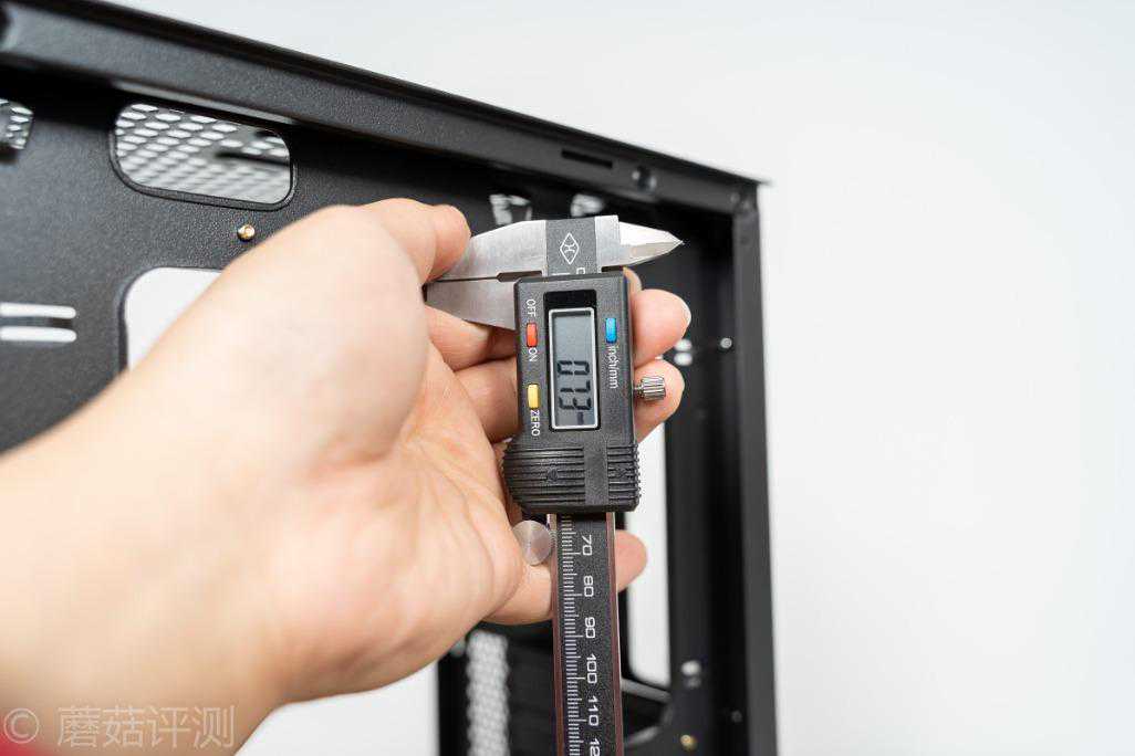 ▼机箱整体摸起来很硬朗,简单测一下钣金件的厚度,0.73mm,这个用料还是可以的