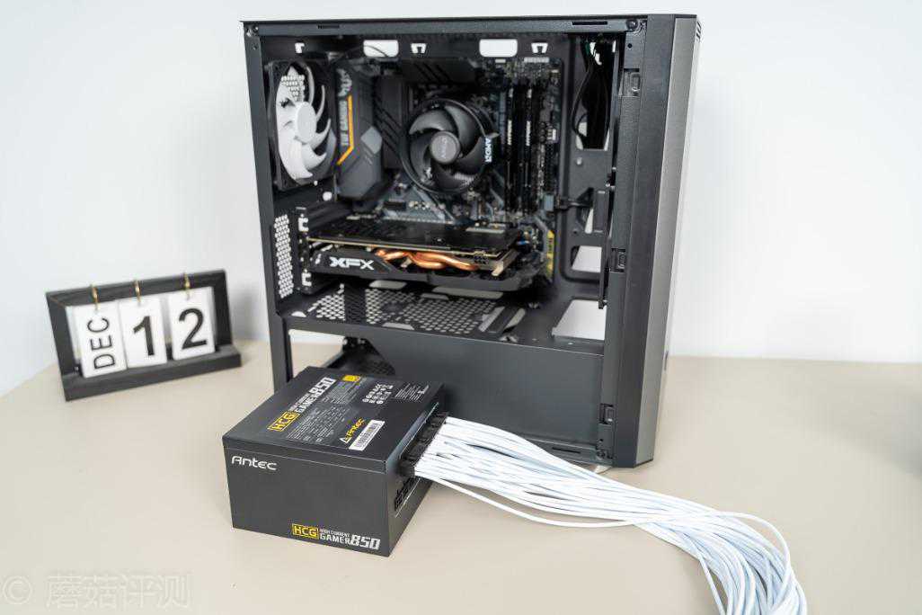 ▼机箱的电源还没到,这里先将我常用的测试电源塞进去,安钛克的HCG850金牌全模组电源,额定输出850W,带这套配置,绰绰有余