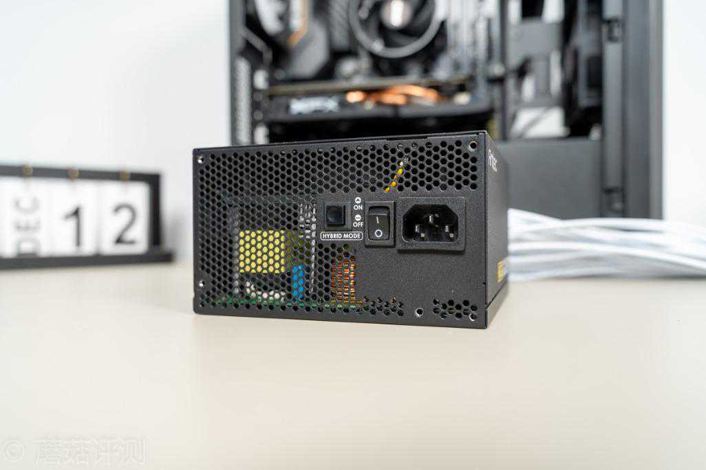 ▼电源的尾部,右侧是熟悉的电饭煲接口,旁边是开关,左侧是风扇的模式选择按钮,可以通过这个按钮来控制电源风扇的运行模式