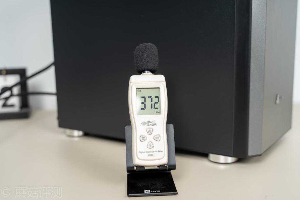 ▼既然是静音机箱,这里我们来测试下。关上房间门,屋里只有闪光灯的散热风扇在转,这个时候大约37.2dB