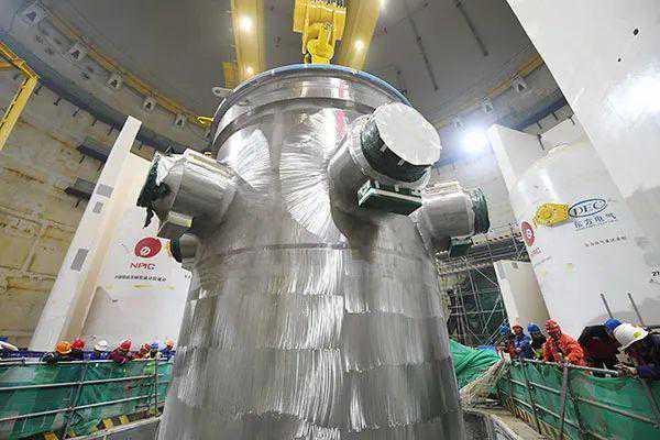 2018年1月28日,“华龙一号”全球首堆、中核集团福清核电5号机组反应堆压力容器顺利吊装入堆。