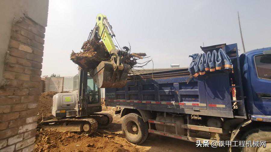 铁甲小编在走访用户的时候,亲眼目睹了这一幕,一台绿色涂装的60挖掘机将大树根装在加高版的渣土车上,这背后除了机手高超的操作技巧,更重要的还有全新一代中联挖机的黑科技。我们就实地看看这个挖机的表现吧!