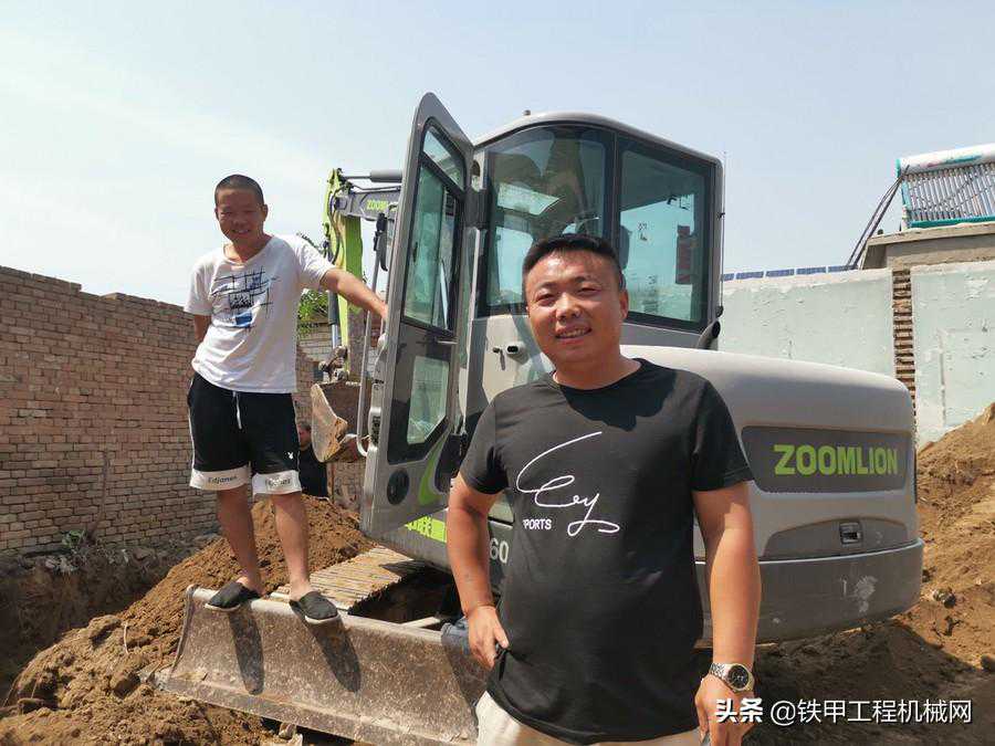 图:河北保定中联重科ZE60E-10挖机机主朱总(白衣是操作手)