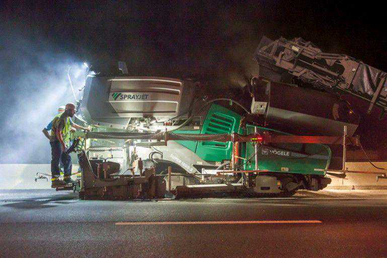 不管是作为一款中高档的传统道路摊铺机,还是用于特殊项目的特殊机型,装备喷洒模块的福格勒超级1800-3为众多道路建设承包商和土木工程公司提供了更为广泛的用途。