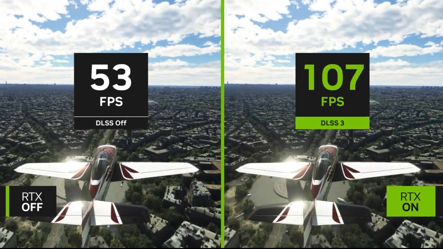 ▼微软模拟飞行开启DLSS3后帧数提升接近100%
