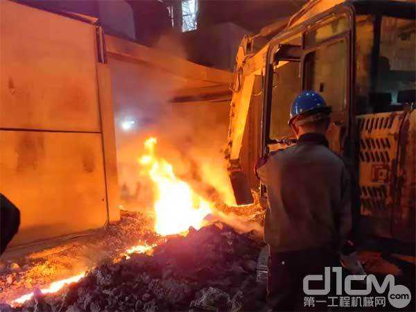 2012年,这台SY75C挖掘机进入唐山钢铁厂服役,迄今已稳定作业10000多个小时,其90%时间都守在炙热的高炉旁。
