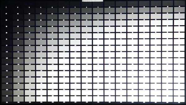 在灰阶部分,我们进行了256级的灰阶测试中,可以看到小米电视大师86英寸MiniLED所渐变过度比较自然,大部分方块都能完整显示,越出色灰阶,呈现的画面效果也就越细腻。
