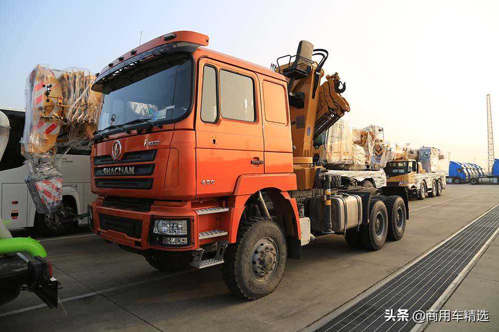作为国产重卡出口非洲国家的重要品牌,陕汽重卡每年都有万余辆卡车销售到海外市场。而这些车型都是为了适应当地使用情况而量身打造的产品,国内自然很难见到。这不在港口,我们就见到了一辆6x6的德龙F3000牵引车,全驱牵引车不稀奇,少见的是它自带随车吊。