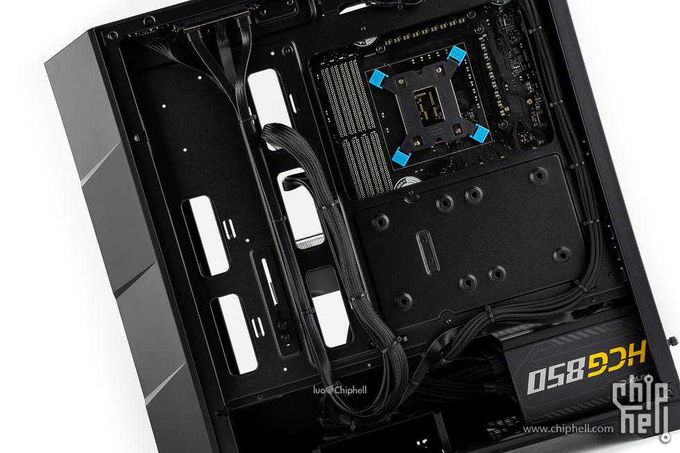 主板位,支持ATX规格,散热器部分开孔较大,更换散热器很方便。