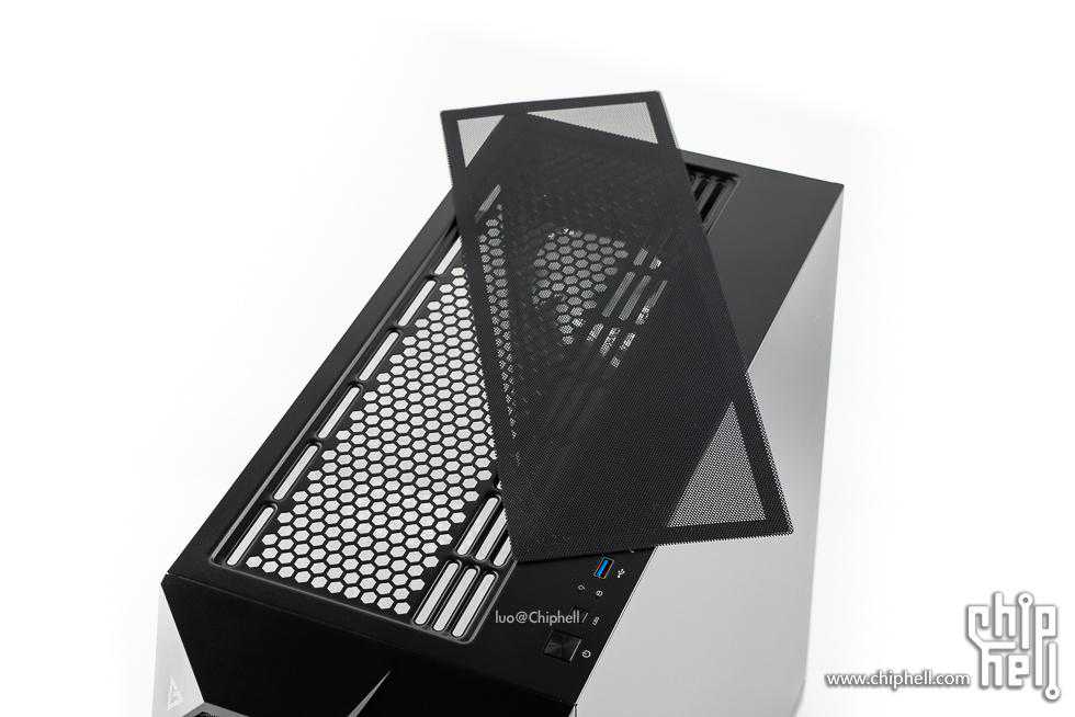 45°视角,较为有设计感的前面板,采用冲网工艺,全径滤尘设计,风量有保障,机箱左侧采用了钢化玻璃侧板。