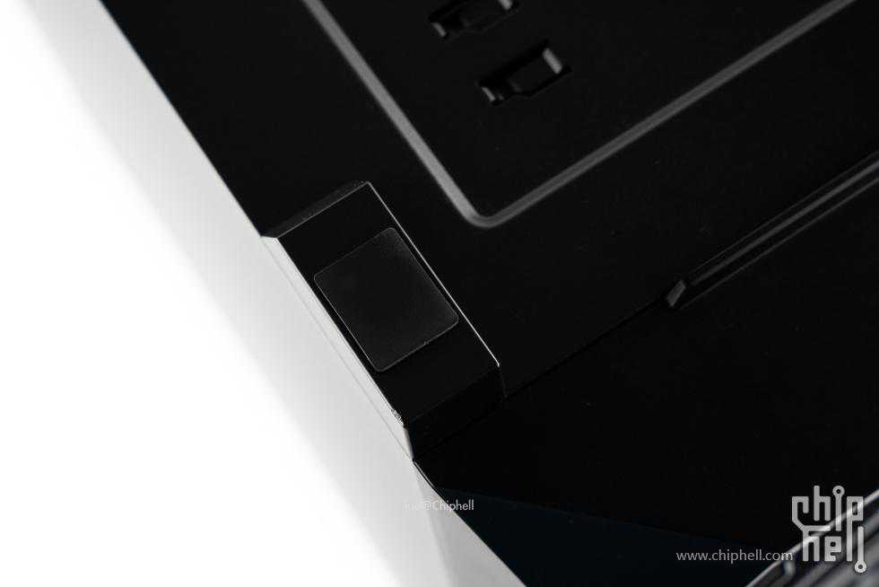 输入接口侧,可以看到大面积的散热开孔,风扇模式按钮也位于此处。