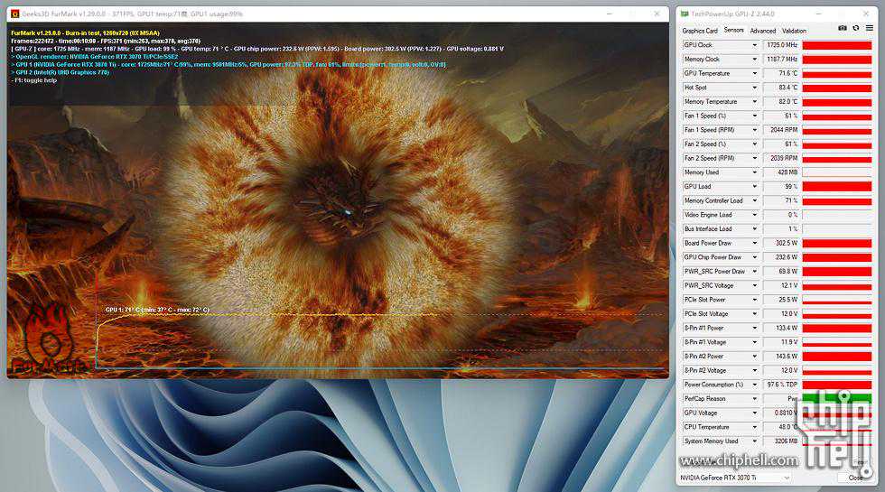 使用Furmark显卡进行测试,满载下测试10分钟,温度最高为72℃。