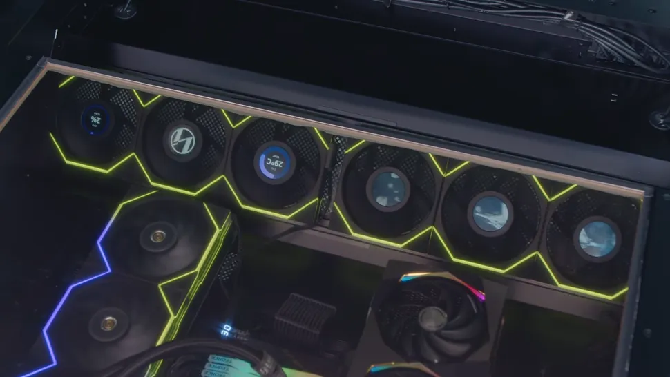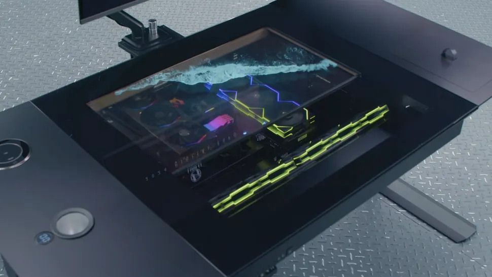 不同于去年台北电脑展上采用电控雾化玻璃面板的早期样品,2024年版的DK-07样品在玻璃桌面下内置了一块来自LG的30英寸透明OLED显示屏。联力宣称该显示屏在作为副屏的同时,不会阻挡用户欣赏透明面板下方的PC硬件。