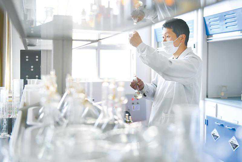 福建省寿宁县三祥新材股份有限公司员工在实验室工作。新华社记者林善传摄