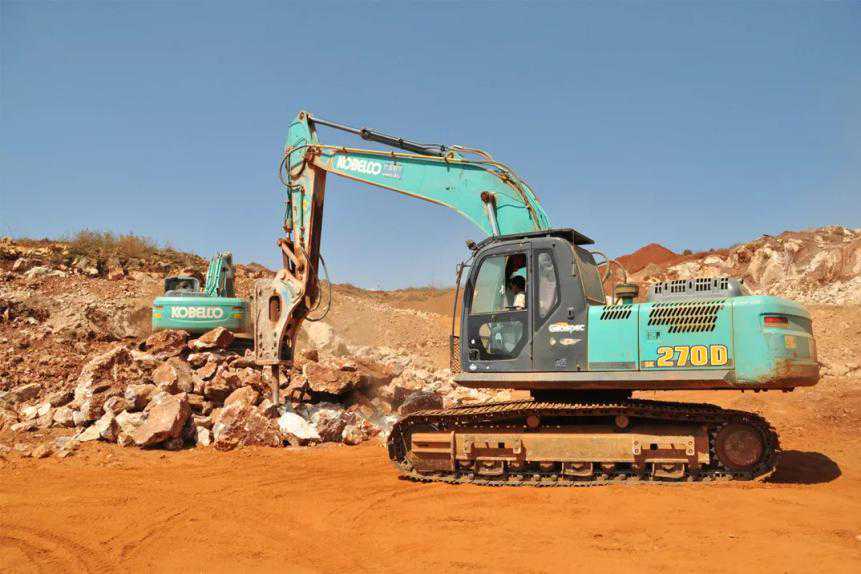 48岁的杨建新是一位拥有4个采石场的大老板,从事工程行业已经11年了。他最早接触挖掘机是在2008年左右。2015年,杨建新听同行、老乡推荐,买了2台KOBELCO挖机,一台SK260-10,一台SK330-10,之后在2017年又买了2台神钢二手机。四台挖机,平时用来装车,有时也会装破碎锤来打锤。