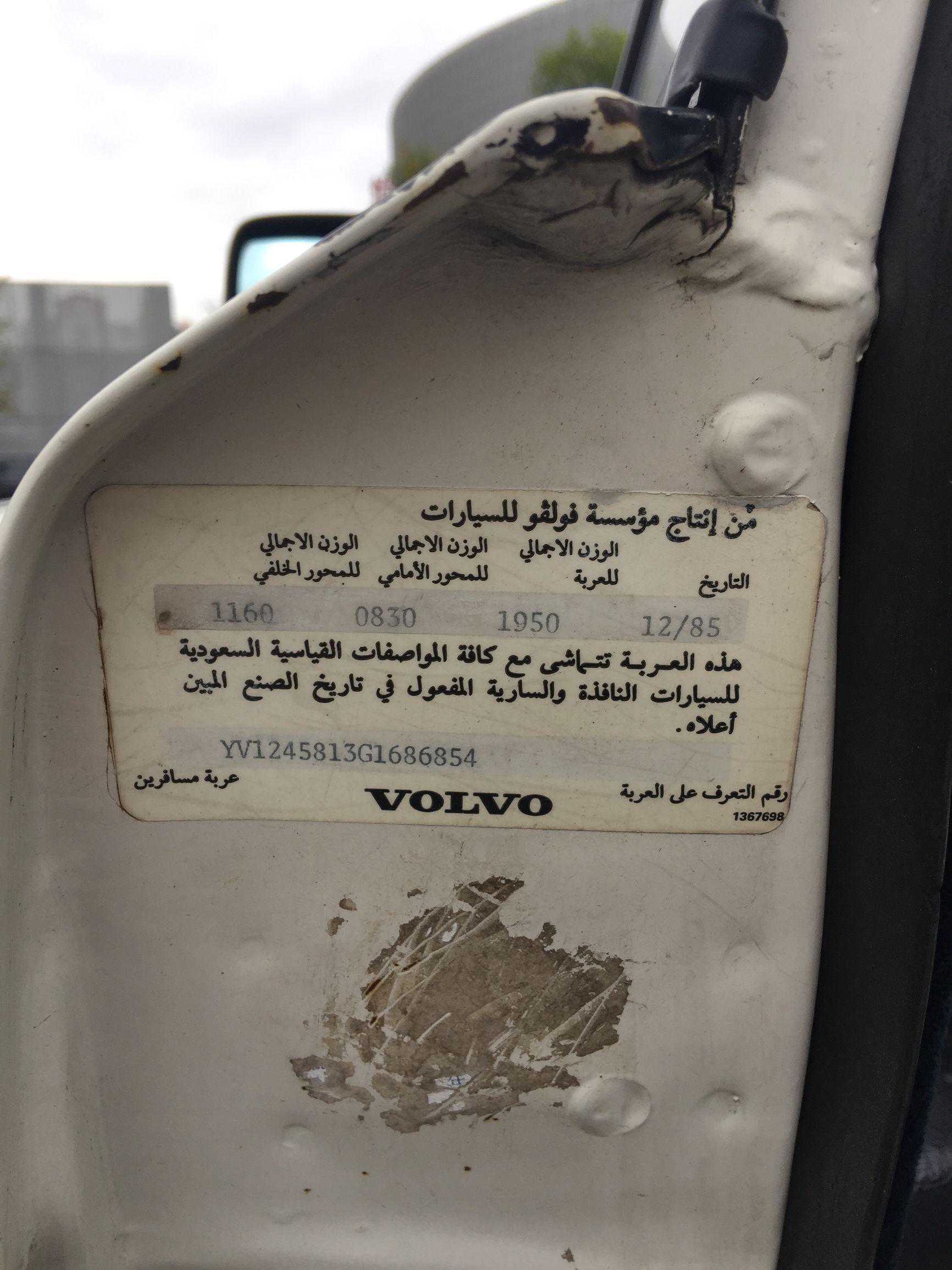 VOLVO的车门厚度告诉你什么叫安全,侧门放手机!谁来挑战?阿拉伯文,出口中东国家,1985年12月生产,距今30余年想想都刺激。