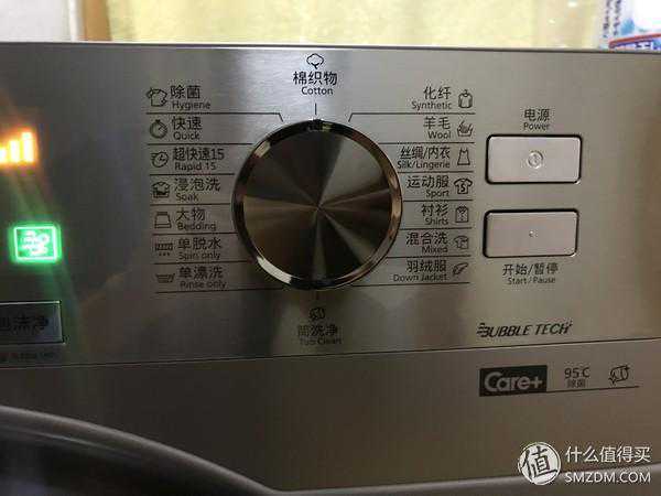 除了常见的功能外,该机还特别带有“泡沫净”功能,虽然说明书没有写这个功能到底是如何实现的,但是在使用过程中发现开启这个功能后,洗涤进水阶段会采用快速旋转的方式加速洗涤剂溶解,产生泡沫进行洗涤。