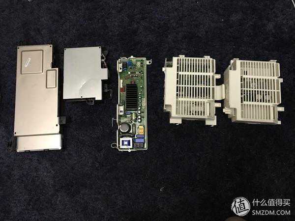 LG最近几年单洗产品都采用显示板背后的设计,电脑版,电机驱动一体化的设计,内部元件明显更加密集,也带有封胶设计,继电器也是直接带插头。