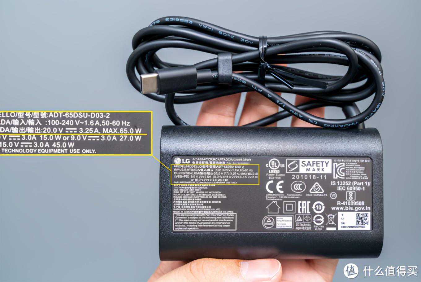 4、另外,我们还可以更换更轻巧的65W充电器进行充电,这样带LGgram出门,就更轻便了: