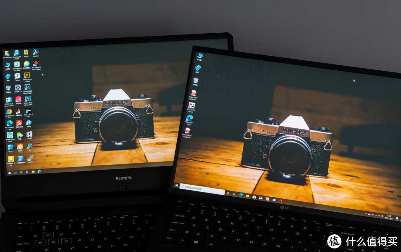 6、两块屏幕使用同样的壁纸,放在一起,好坏高下立判: