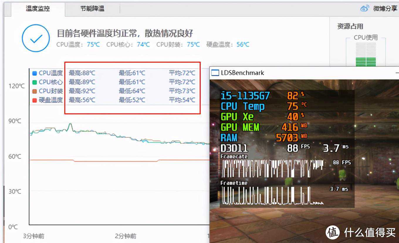 散热效果一般,但是LGgram在高温下,依旧能稳定运行: