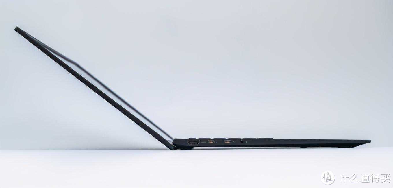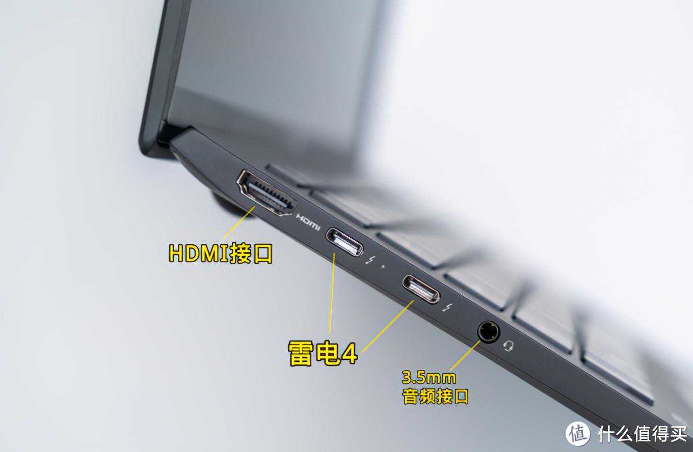 14、接口方面,键盘左侧有HDMI接口、2个雷电4、以及1个3.5mm的音频接口。